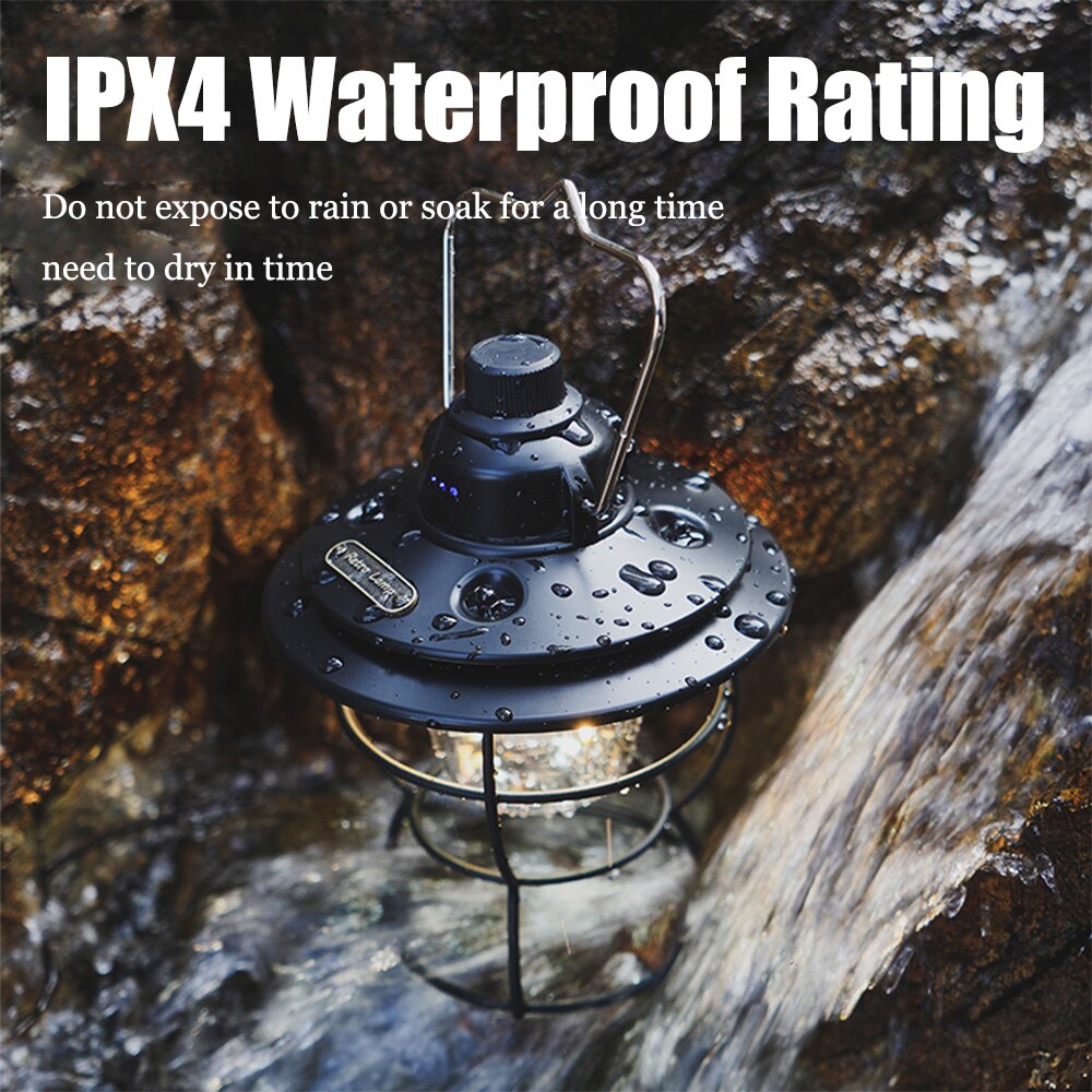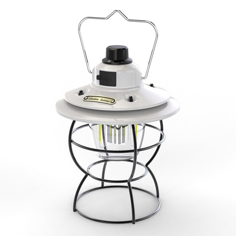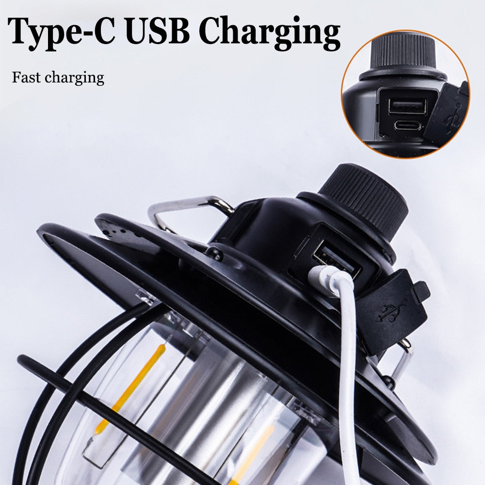 Led Portable Retro Camping Lantern Rechargeable Metal Handle Flashlight Vintage Warm White Light Outdoor Hanging Tent Light