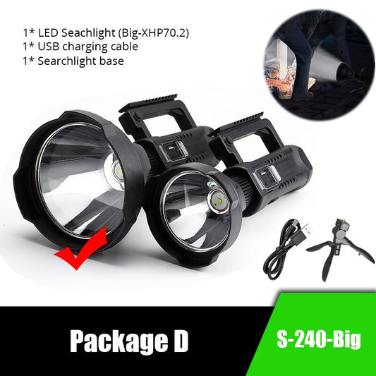 Powerful LED Flashlight Portable XHP70.2 Torch USB Rechargeable Searchlight Waterproof Spotlight with Base Fishing Light Lantern