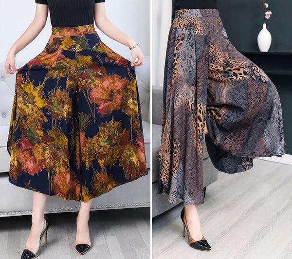 Dan is de Broek met hoge taille en wijde pijpen een van de meest comfortabele mix van rok & broek die je ooit gaat aantrekken, dankzij de zachte en rekbare stof. De Broek met hoge taille en wijde pijpen zijn een rok gecombineerd met een broek. Ze zijn voorzien van kwaliteit stof die los genoeg is om lucht door te laten in de zomer.